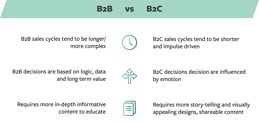 Conversely, B2C decision-making is usually more heavily influenced by emotions, personal preferences, and immediate gratification. Consumers are more likely to respond to content that entertains, inspires, or evokes an emotional response. B2C content strategies often revolve around storytelling, visually appealing designs, and relatable, shareable content.