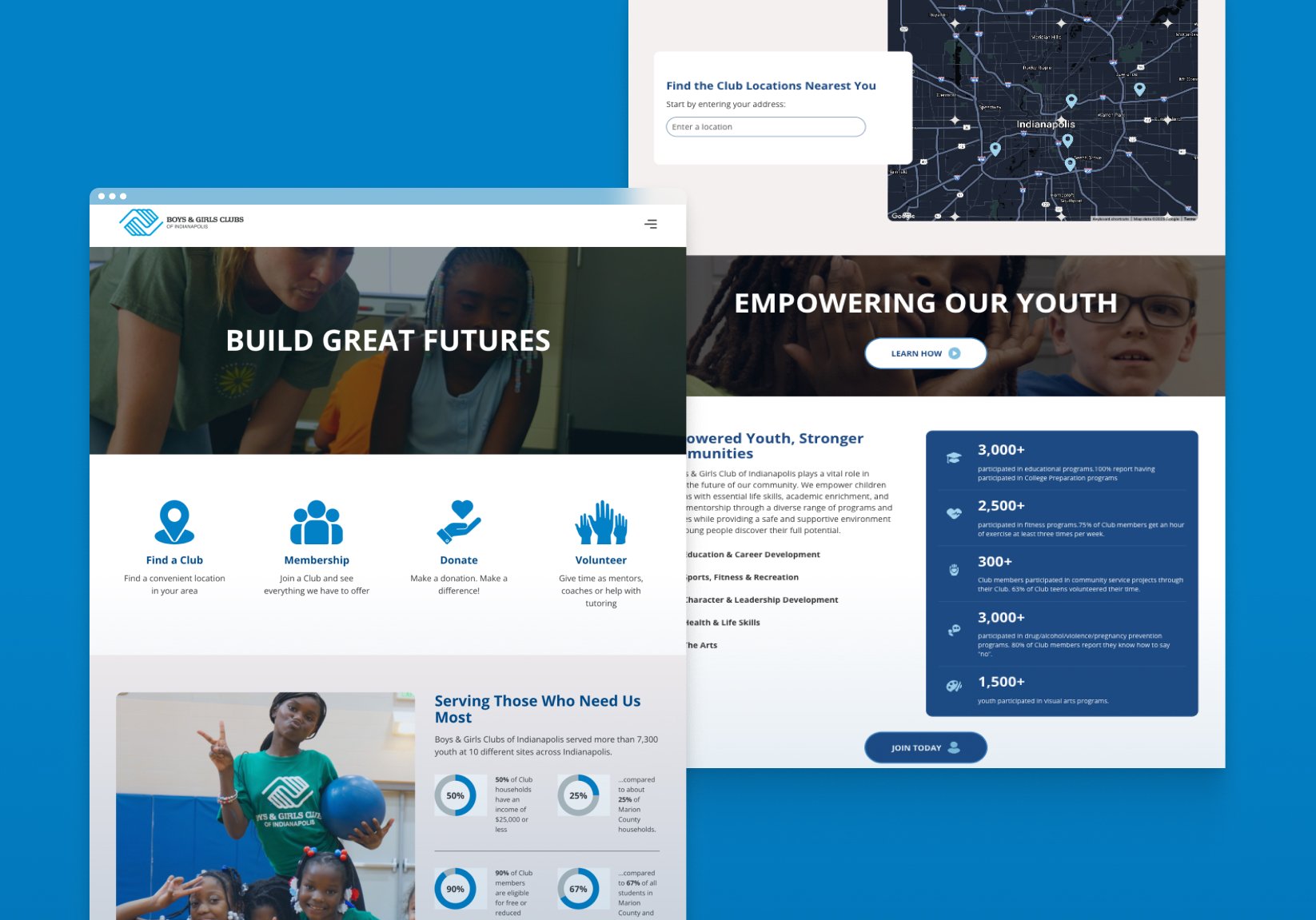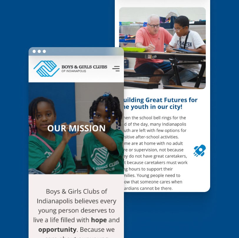 By combining innovative web design and development with strategic storytelling, we wanted to create a platform to support the mission of Boys & Girls’ Clubs of Indianapolis and inspire our greater metropolitan area to take action. Our team focused on developing a site that is both visually appealing and easy to navigate, ensuring that visitors can quickly find information about programs, events, and ways to get involved.