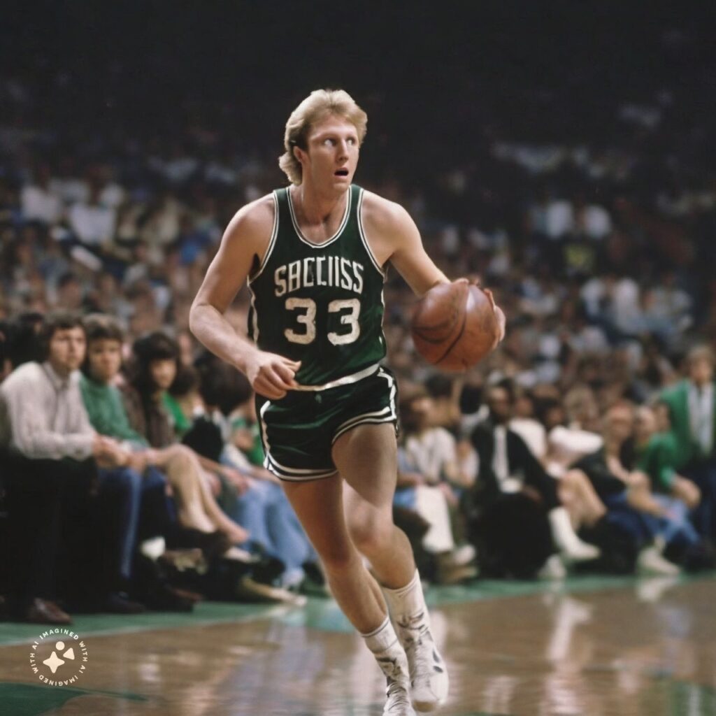 This is what happened when I asked AI to create an image of Larry Bird. Larry Bird never looked this scared on the court. Never. Take a stand against horrible depictions of Hoosier legends. Don’t use AI to generate images. And don’t root for the SACCIIS or however AI thinks “Celtics” is spelled, either. (And does that ball have a tuft of hair?)