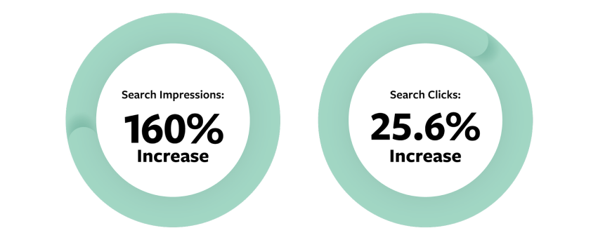 - Search Impressions: 160% increase (from 53,700 to 140,000)