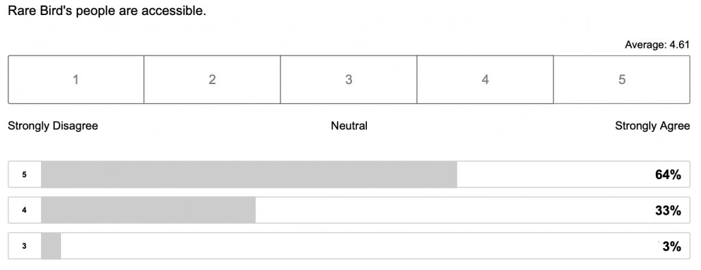 Overall, the process was enlightening and informative and I’m deeply appreciative to everyone who took the time to respond. We’ve been able to identify some weak points in our processes and communications and put corrective measures in place. We’ve also received some nice confirmation that some of our core values — our customers know how important they are to us (4.33) and feel that we’re an easy firm with which to work (4.48) — are being perceived exactly as intended. But until we’re scoring perfect fives across the board, there will always be something to work on.