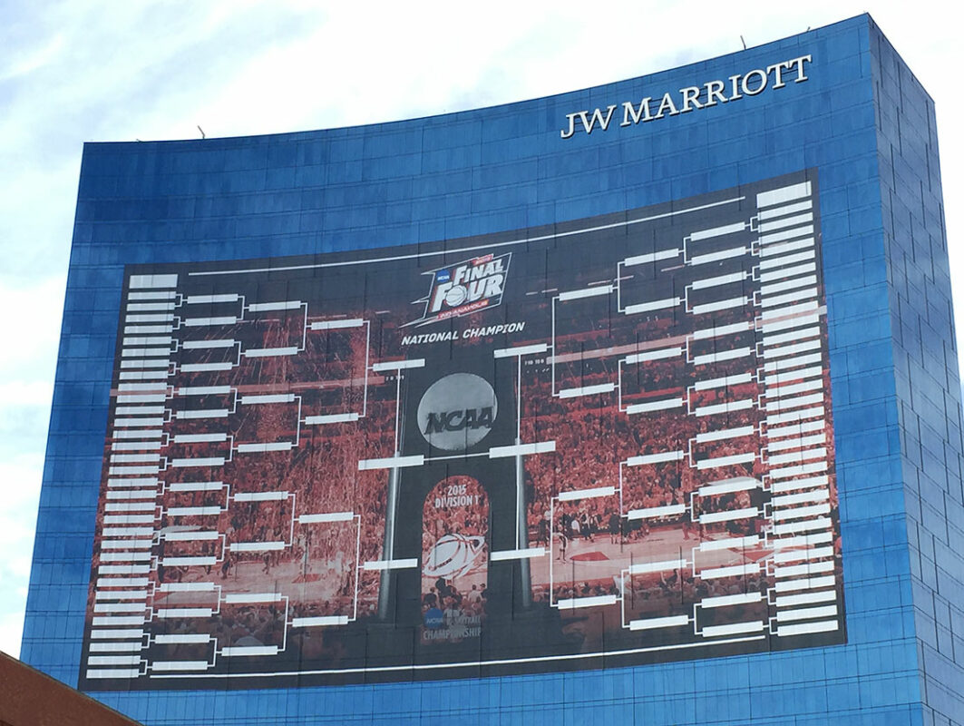 Social media is a big part of today’s March Madness. We snapped this picture of the JW Marriott monster bracket when we were downtown last week for a Social Media Networking breakfast hosted by the NCAA. They’ve done a great job of making sure that fans all over the country can stay informed, keep in touch and create a community of all things college basketball. It’s a great reminder of the power of social media and making sure that when you have something to say, you use all the avenues you can to say it, to be heard and to listen to what others are saying.