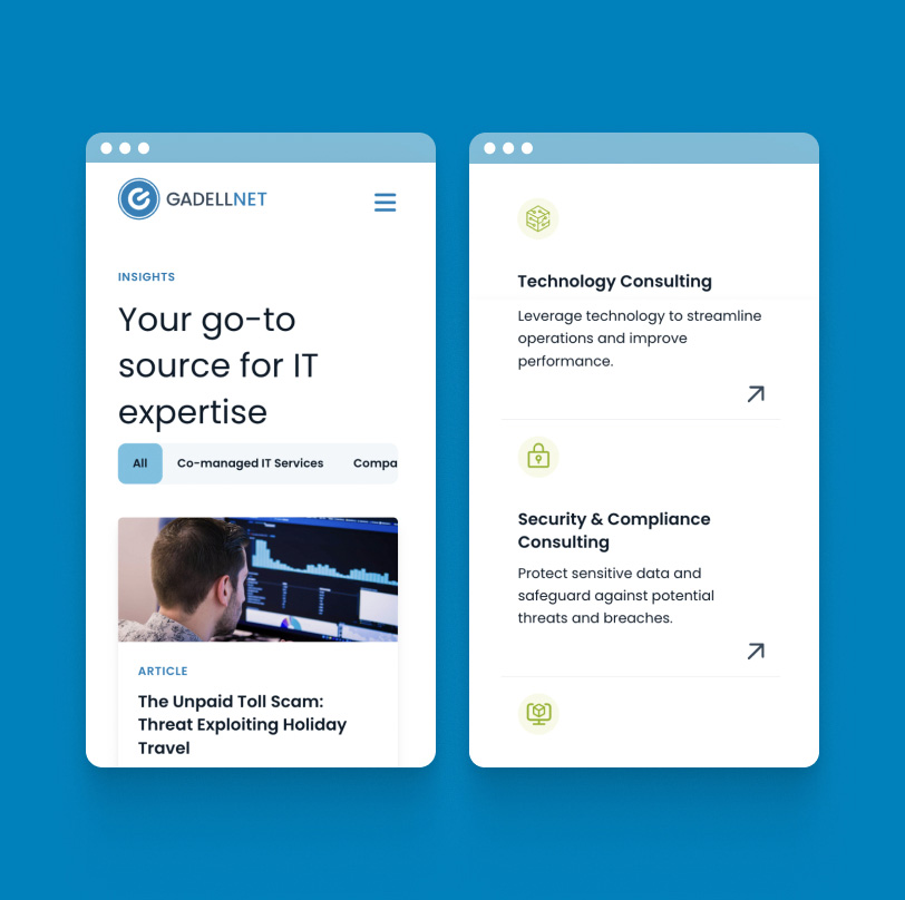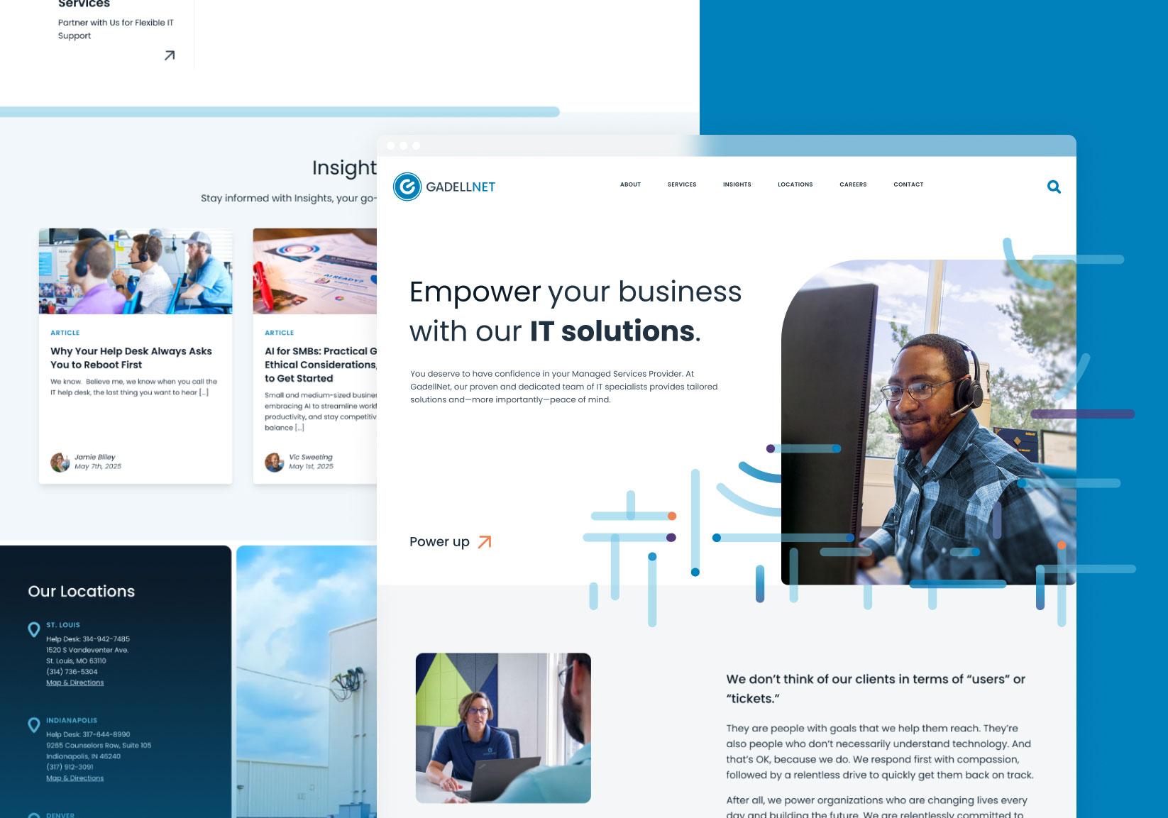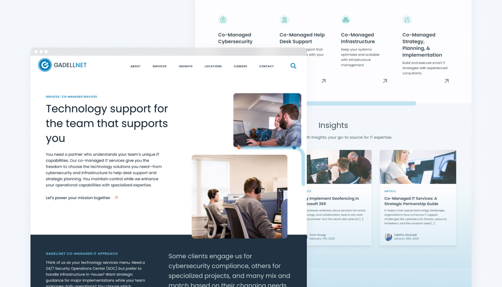 Their redesigned website also exudes a more approachable, human touch, with rounded edges, white space, and photos of actual GadellNet employees incorporated throughout to engender trust and connection with their customer base. After all, it’s the people at GadellNet who safeguard each client’s sensitive data and help them avoid disaster, or recover from disaster should it strike.