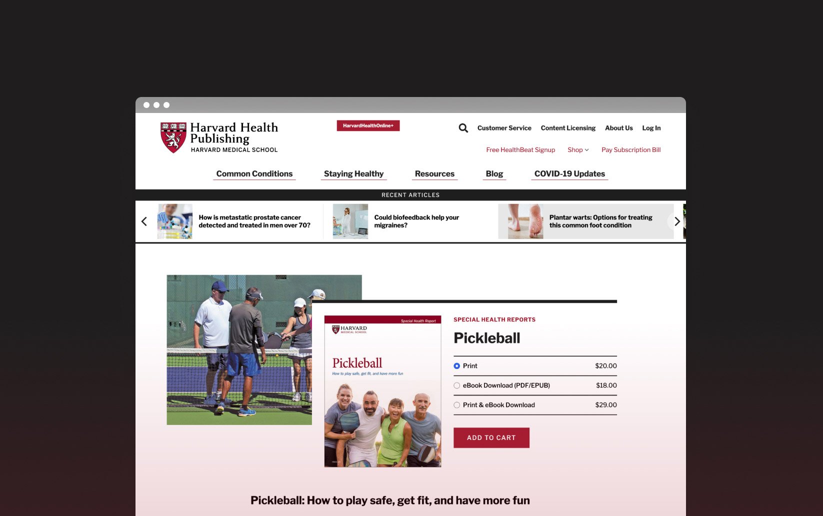 When we were called in to overhaul Harvard Health Publishing’s online commerce, we were instantly aware of what needed to be done to correct the problems and modernize their approach.